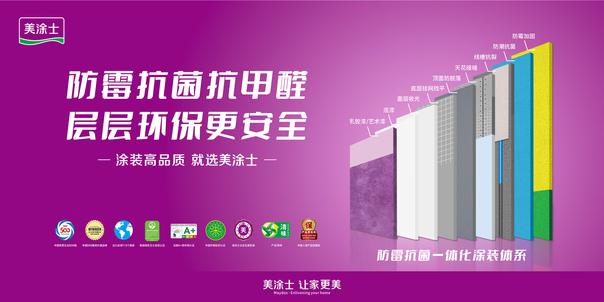 美涂士在多年的经营中坚持“以用户为中心,与客户共赢,以价值创造者我本,长期艰苦奋斗,坚持自我批判“的核心价值观,秉持”人无我有,人有我优“的研发创新理念,一直把客户的需要作为企业矢志不渝的追求,一直为客户或广大消费者提供优质、性价比高、安全、环保、有个性化的产品。 美涂士坚持以技术创新引领行业发展,积累了雄厚的技术实力。